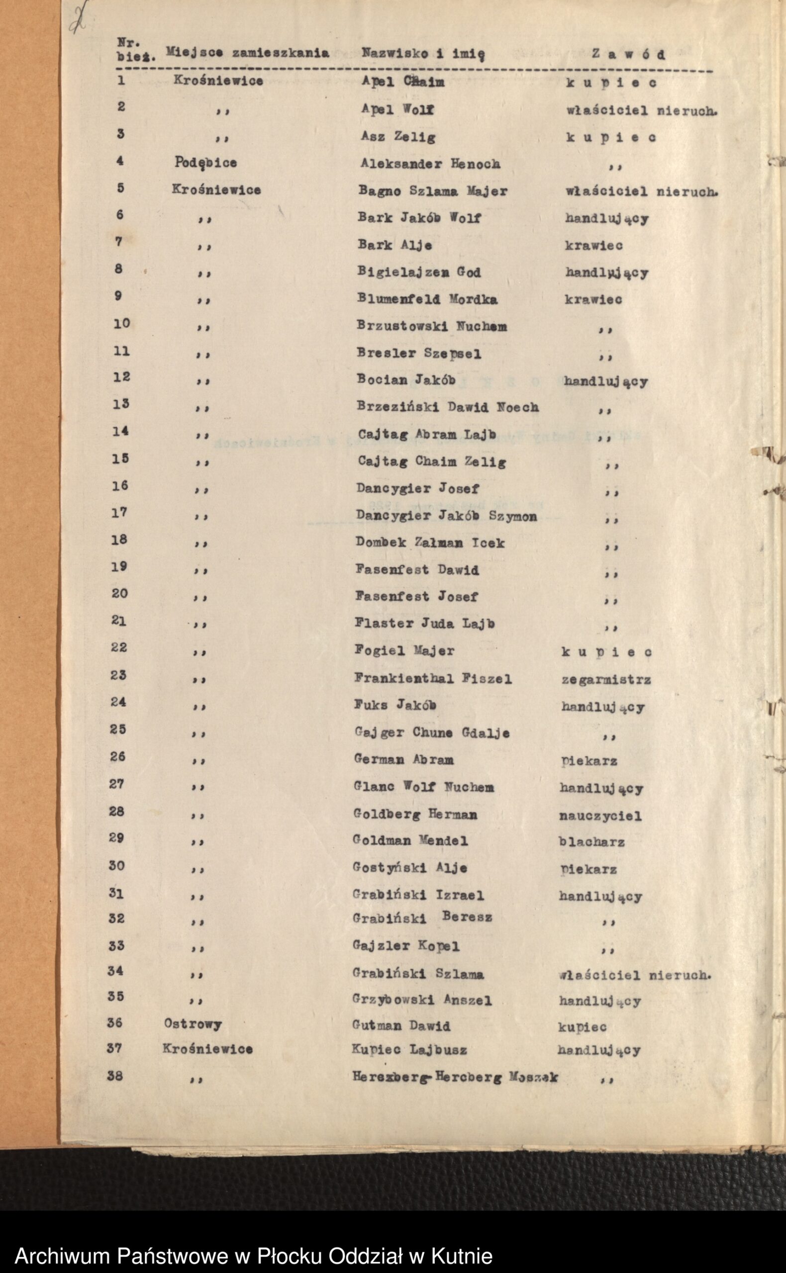 Spis właścicieli domów w Krośniewicach na potrzeby wyborów 1930 rok: